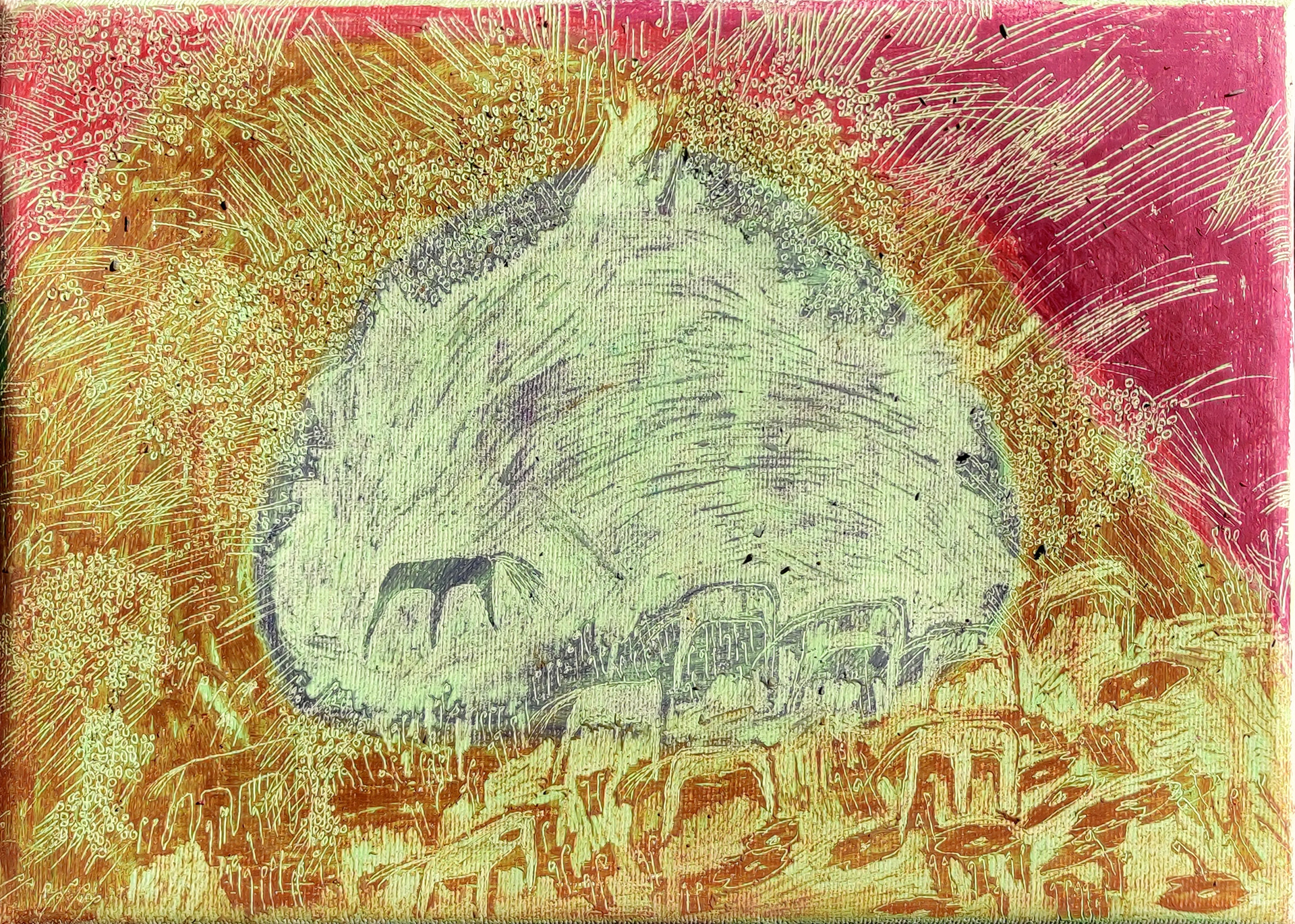 Wachskreide auf Leinwand