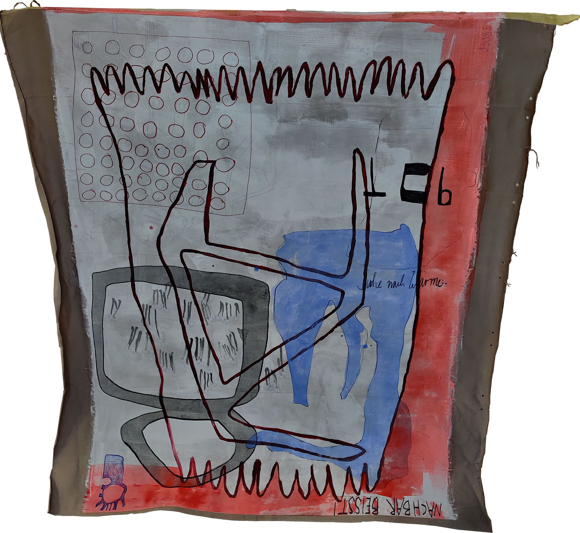 Acrylfarbe, Marker und Kugelschreiber auf Leinwand